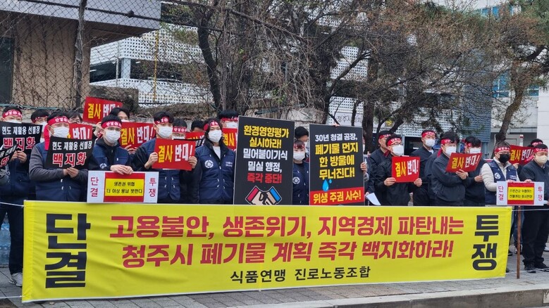 하이트진로와 오비맥주 청주공장장도 이날 공동 입장문을 내고 현도산단 폐기물 선별장 신축 공사의 즉각 중단을 요구했다.