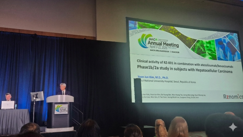 [mdtoday = 박성하 기자] 알지노믹스가 19일(현지시각) 미국 샌디에고에서 열린 AACR 2026(American Association for Cancer Research Annual Meeting 2026)에서 RNA 기반 항암제 ‘RZ-001’의 간세포암(HCC) 대상 임상시험 중간 결과를 구두 발표했다.