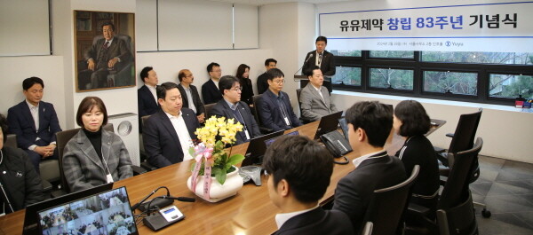 [mdtoday=김준수 기자] 유유제약이 28일 서울 사무소와 제천 공장, 광교 연구소 및 전국 영업지점을 화상으로 연결해 창립 83주년 기념식을 진행했다.
