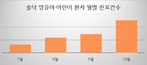 | ▲ 올해 하반기 솔닥 활용한 영유아 어린이 환자 월별 진료 건수 (사진= 솔닥 제공) |