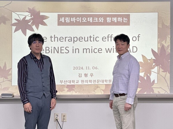 이번 워크숍에서 부산대 한의학전문대학원 김형우 교수는 세림바이오테크의 특허 물질 ‘세비네스(CeBiNES)’가 염증이 유발된 피부에 발생하는 증상과 피부 장벽 기능, 조직병리학적 소견과 사이토카인 분비에 미치는 영향에 대한 연구 결과를 발표했다.