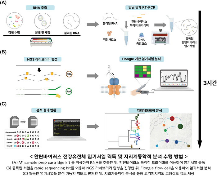 한탄바이러스 전체 유전체를 획득하려면 기존 차세대 염기서열 분석법은 고비용에 하루 이상의 시간이 소요됐으나, 이번에 개발된 휴대용 나노포어 방법은 비용 절감뿐 아니라 3시간 안에 분석이 가능하다는 강점이 있다.