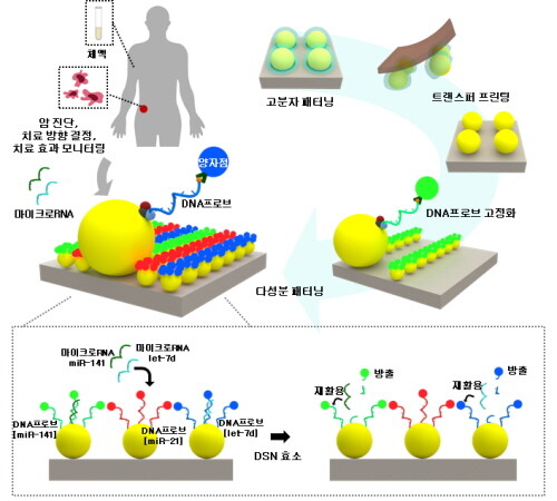 KAIST는 생명화학공학과 박현규 교수, 신소재공학과 정연식 교수 공동 연구팀이 암 관련 마이크로RNA를 다중 검출할 수 있는 다색 양자점(퀀텀닷) 어레이를 개발했다고 20일 밝혔다.