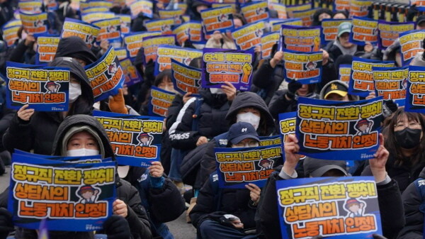 이어 “이재명 정부는 생중계되는 텔레비전에서만 비정규직 노동자들의 처우를 개선하겠다고 말만 하지 말고 6년 동안 투쟁해온 국민건강보험 고객센터 노동자들의 절박한 요구를 지금 당장 수용하라”며 “민주노총 공공운수노조는 국민건강보험 고객센터 노동자들의 투쟁에 끝까지 연대하고 투쟁할 것”이라고 강조했다.