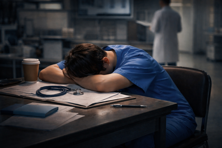 | ▲ 전공의들이 여전히 주 70시간이 넘는 고강도 근무에 시달리는 가운데, 우울감과 자살사고 경험률이 일반인보다 크게 높은 것으로 나타났다. (사진=AI 생성 이미지) |