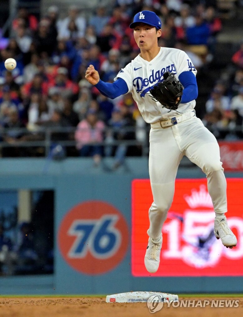 | ▲ 1루에 송구하는 다저스 유격수 김혜성 (사진=Imagn Images-연합뉴스) |