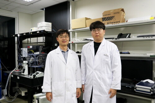 | ▲ 왼쪽부터 로봇및기계전자공학과 최홍수 교수, 노승민 석박사통합과정생 (사진=DGIST 제공) |