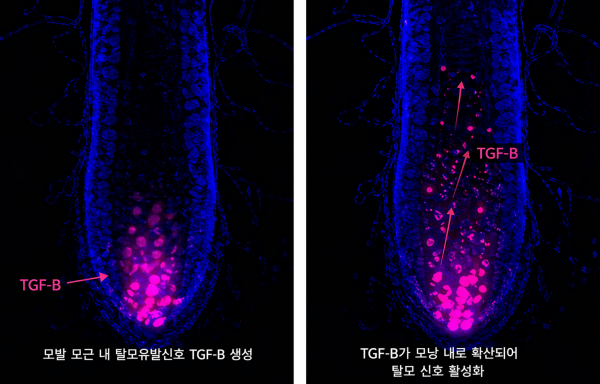 이처럼 원인은 제각각이지만, 최근 업계와 관련 정보 콘텐츠에서는 오히려 공통적으로 나타나는 변화에 주목하고 있다. 바로 다양한 원인들이 결국 탈모유발신호 TGF-β 활성과 연결될 수 있다는 점이다.