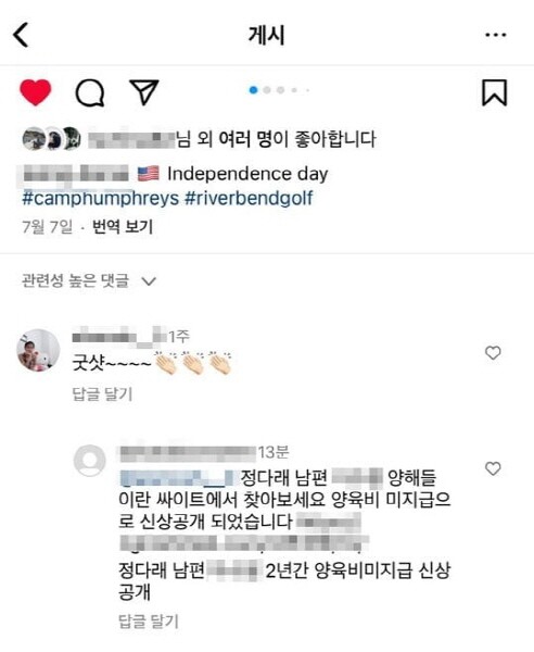 | ▲ 정다래의 SNS 게시물에 A씨가 게재한 양육비 미지급 관련 글. (사진=정다래 SNS) |