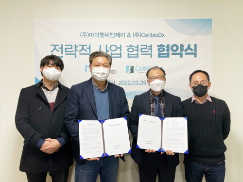 [mdtoday=고동현 기자] 마이펫씨엔제이 이준영 대표와 셀바이오디엑스 김민정 대표가 지난 25일 경기도에 위치한 부설 생명과학기술연구소에서 전략적 사업 협력 협약식을 맺었다.