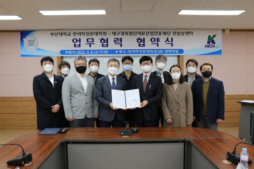 케이메디허브 전임상센터는 지난 8일 부산대학교 한의학전문대학원 3층 대회의실에서 부산대학교 한의학전문대학원과 업무협약을 체결했다고 11일 밝혔다.
