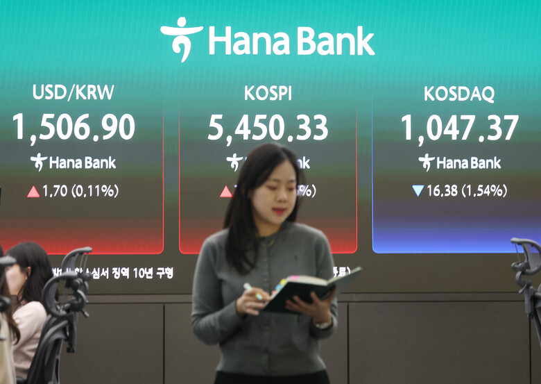 6일 코스피는 전 거래일보다 73.03포인트(1.36%) 오른 5450.33에 거래를 마쳤다. 장중에는 2%대 상승세를 보이며 5500선을 터치했으나, 오후 들어 상승폭을 일부 반납했다. 기관은 8370억원을 순매수했고, 개인과 외국인은 각각 1조501억원, 1597억원을 순매도했다.