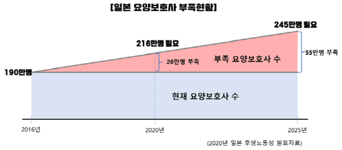 일본의 후생노동성에 의하면 일본의 요양 전문인력 부족 문제가 점점 심화돼 2025년에는 약 55만명의 인력이 필요하고, 우리나라도 통계청 발표에 의하면 2025년 초고령화 사회가 도래할 것으로 전망되고 있다.