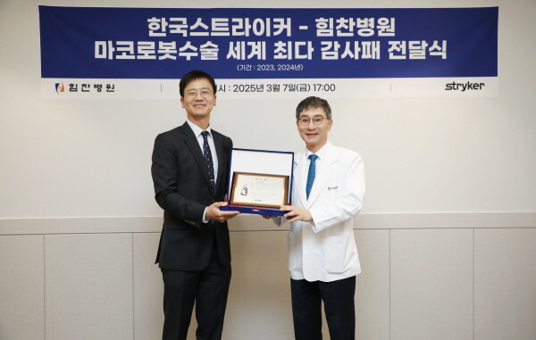 한국스트라이커에 따르면 마코로봇 시스템을 국내 의료에 선도적으로 도입한 후 2023년 전 세계 단일기관 중 최다 수술을 수행해 마코로봇 인공관절 수술의 우수성을 알린 병원의 공로를 인정한 것이다.