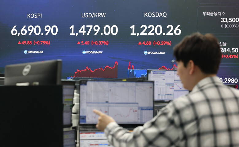 29일 코스피는 전 거래일보다 49.88포인트(0.75%) 오른 6690.90에 마감했다.
