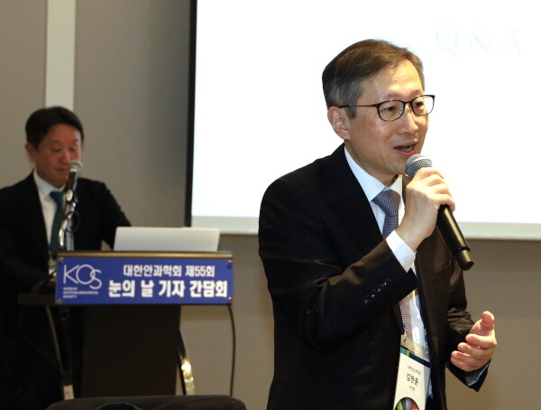 | ▲ 6일 열린 대한안과학회 기자간담회에서 김찬윤 대한안과학회 이사장이 질의에 답변하고 있다. (사진=대한안과학회 제공) |