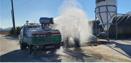 이외에도 광역 방제기 및 소독방제 차량(11대)을 활용해 야생조류 출현지, 농장 진입로 및 주변 소하천 등을 집중소독하고, 방역시설이 취약한 소규모 농가에는 축협 공동방제단(6개반)을 투입해 빈틈없는 소독을 지원하고 있다.