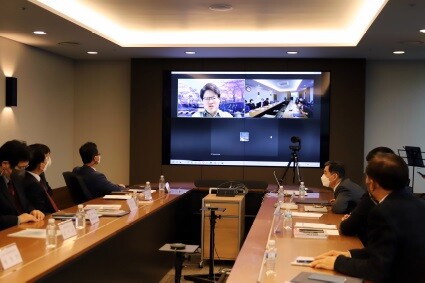 | ▲ 핑퐁 서승원 대표가 화상으로 ‘다가온 미래기술:모빌리티와 메타버스’라는 주제로 강연을 하고 있다. (사진=인프라경제연구원 제공) |