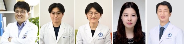 | ▲ (왼쪽부터) 아주대 의대 생화학교실 박태준 교수, 박순상 연구강사, 이영경-김영화 연구교수, 종양혈액내과 최용원 교수 (사진=아주대학교 병원 제공) |