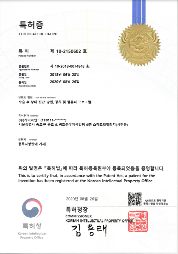 [mdtoday=고동현 기자] 케어마인드는 성형외과 환자의 회복 가능성을 추정하는 기술인 ‘수술 후 상태 진단 방법, 장치 및 컴퓨터 프로그램’을 특허 등록했다고 19일 밝혔다.
