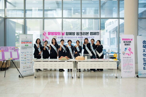 [mdtoday=김미경 기자] 충북대학교병원 충북지역암센터가 22일 암병원 1층 로비에서 충북권역암생존자통합지지센터와 함께 ‘세계 유방암의 날’ 기념 핑크리본 캠페인을 개최했다.