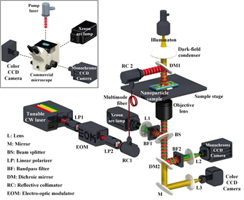 암시야 산란 현미경 기능으로는 기판위에 분산된 단일 나노입자들의 위치를 파악하고, 광열반사 현미경 기능으로는 위치가 파악된 나노입자의 빛 흡수 스펙트럼을 측정할 수 있는 이중모드 방식이다.