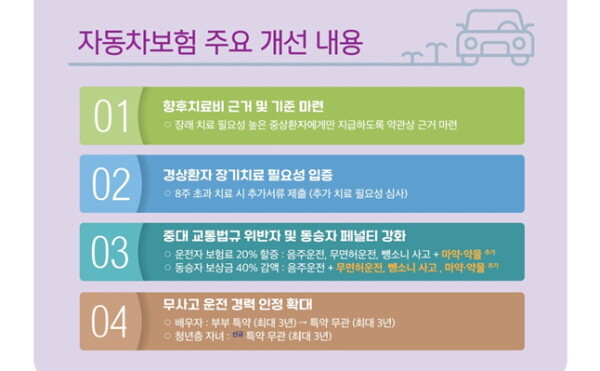 | ▲ 자동차보험 주요 개선 내용 (사진=국토교통부 제공) |