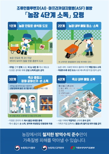 | ▲ 농장 4단계 소독 요령 (자료=고병원성 조류인플루엔자 중앙사고수습본부 제공) |