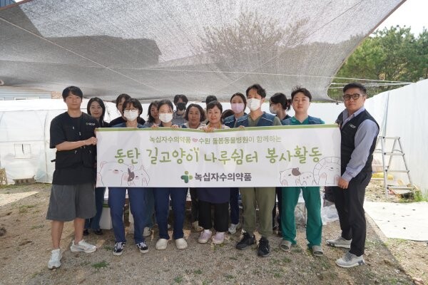 최근 진행된 나루쉼터 봉사활동에는 돌봄동물의료센터 의료진을 비롯해 글로벌 제약기업인 녹십자수의약품 가치그린봉사단원들이 함께 손을 맞잡았다.