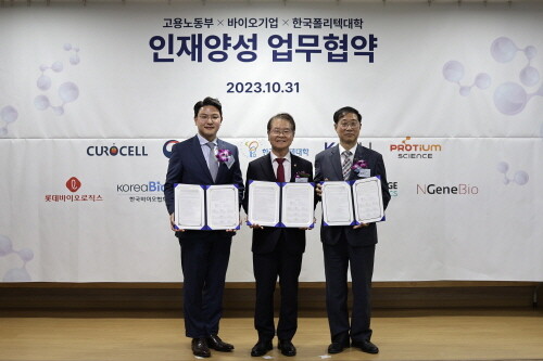 협약식은 서울시 용산구에 위치한 한국폴리텍대학 정수캠퍼스에서 진행됐다. 이정식 고용노동부 장관, 임춘건 한국폴리텍대학 이사장 직무대리를 비롯해 롯데바이오로직스, 프로티움사이언스, 케이셀, 와이바이오로직스, 큐로셀, 프레스티지바이오로직스, 엔젠바이오, 툴젠, 한국바이오협회 등 9개의 바이오 기업 및 기관 관계자들이 참석했다.