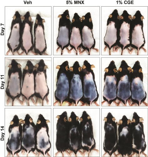 | ▲ 센티페드그라스 추출물의 발모 효능 실험 (사진=한국원자력연구원 제공) |