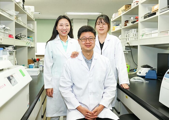 | ▲ 영남대학교 의생명공학과 연구팀 황주영 연구원-진준오 교수-안은경 연구원 (사진=영남대학교 제공) |