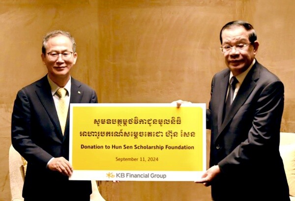 더불어 이날 면담에서 KB금융은 캄보디아 저소득 대학생을 대상으로 장학사업을 실시하는 '훈센장학재단'에 기부금도 함께 전달했다.