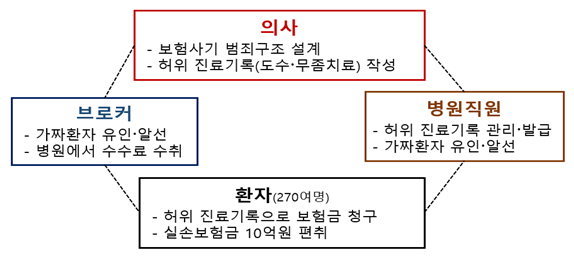 | ▲ 보험사기 범죄 구조도 (사진=금융감독원 제공) |