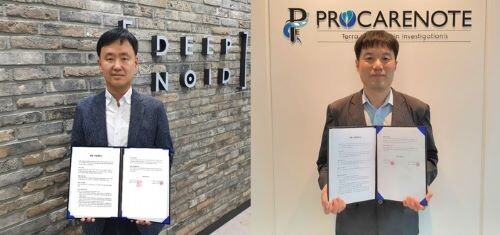 | ▲딥노이드-프로큐라티오, AI 의료데이터 분석 솔루션 개발 공동사업계약 체결 디지털 서명 인증 사진(사진= 딥노이드 제공) |