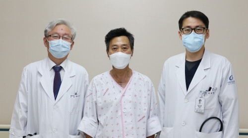 | ▲정성환 교수-소철호 환자-이석인 교수 (사진=가천대 길병원 제공) |