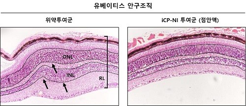 또한 “염증으로 두꺼워진 망막조직을 회복시키고 붕괴된 외, 내 과립층의 구조를 복원시키는 치료효능이 증명됐으며 현재, iCP-NI는 유베이티스 치료제로서 점안액 의약품으로 비임상/임상개발 중”이라고 말했다.