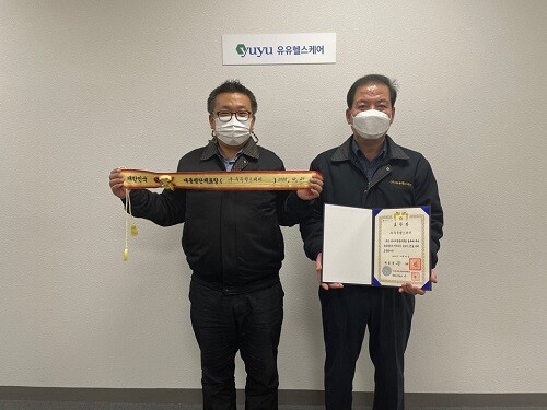 | ▲유유헬스케어가 일자리 창출 대통령 표창을 수여받았다. (사진=유유헬스케어 제공) |