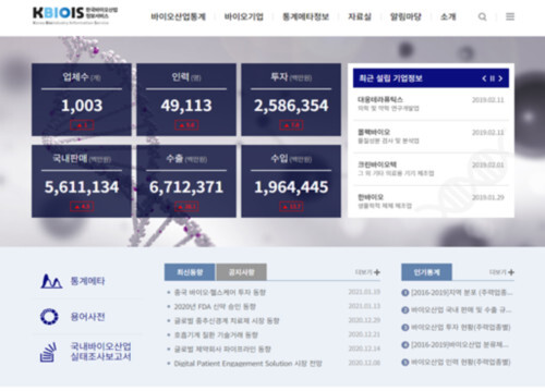 한편, KBIOIS에서는 국내 바이오산업 통계현황, 국내외 바이오산업 최신동향 등 바이오산업 관련 다양한 정보를 제공하고 있다.