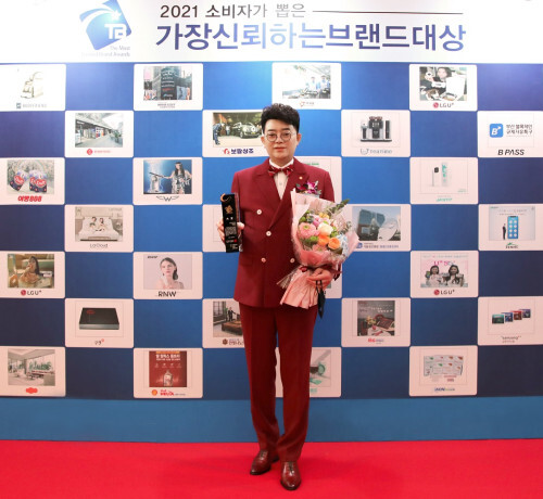 | ▲보람상조 최철홍 회장이 2021 소비자가 뽑은 가장 신뢰하는 브랜드 대상을 수상하고 있다 (사진=보람상조 제공) |