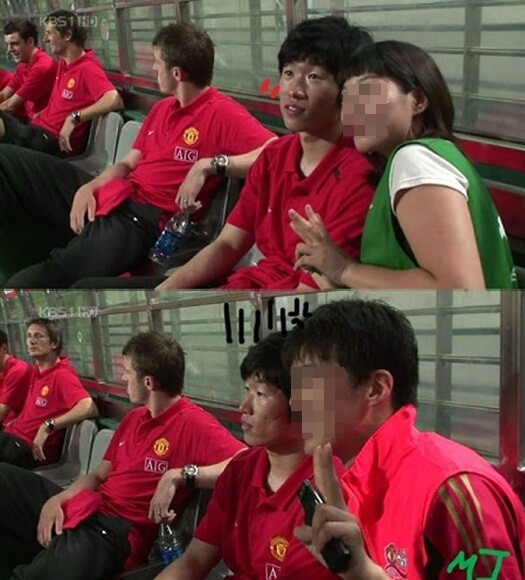 공개된 사진은 지난 2007년 박지성이 속한 맨체스터 유나이티드가 내한했을 당시 중계방송을 캡처한 것으로 벤치에 앉아 있던 박지성과 팬들의 사진 촬영 모습이 담겨 있다.