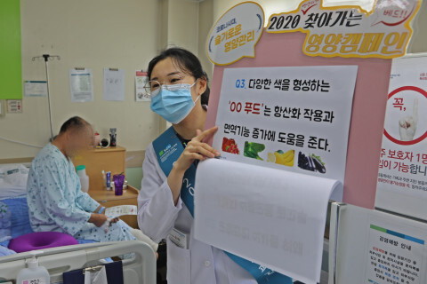 ‘코로나19 시대, 면역 증진을 위한 영양관리’를 주제로 진행된 캠페인에서 병원 임상영양사들은 입원환자와 교직원들을 찾아가 교육자료를 나눠주며 영양교육을 실시했다.