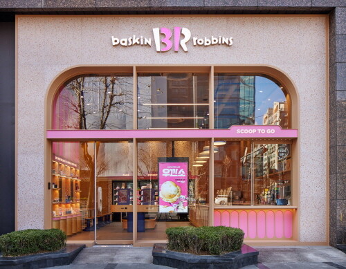 새로운 콘셉트가 적용된 인테리어와 패키지 디자인도 선보인다. 배스킨라빈스를 상징하는 분홍색과 은은한 우드톤의 인테리어를 적용해 아늑한 분위기를 연출했고, 건물 외관의 정면(파사드)과 매장 손잡이 등에는 핑크 스푼을 재활용한 타일을 활용해 세련된 분위기를 더했다.