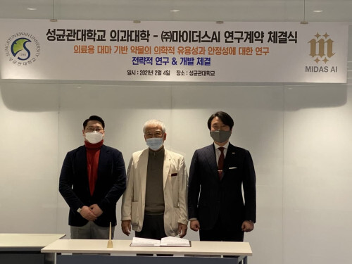| ▲마이더스AI는 4일 성균관대학교 산학협력단과 의료용 대마 기반 약물의 체중 조절과 통증 치료에 대한 효과검증’에 대한 비임상(전임상) 연구계약을 체결했다 (사진=마이더스AI 제공) |