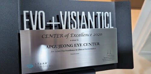 압구정안과의원은 지난 2일 하루 안에 양안 모두 렌즈삽입술이 가능한 안과 중 우수한 수술 결과와 수술 건수를 인정받아 ‘EVO+ 아쿠아 ICL’ 특수렌즈 제조사인 미국 STAAR 社로부터 ‘2020 EVO+ VISIAN CENTER of EXCELLENCE 2020’를 수여 받았다고 8일 밝혔다.