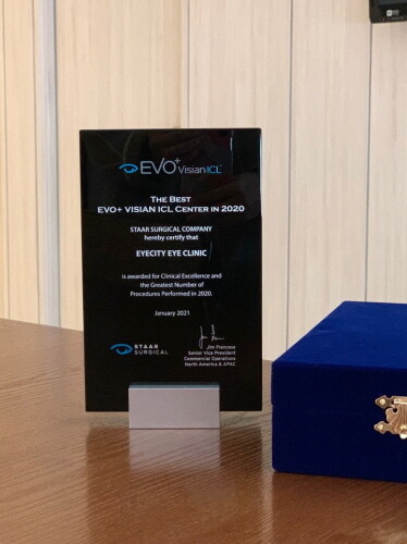 ICL 렌즈삽입술을 전문으로 집도하는 전국 상위 안과에만 수여하는 EVO ICL 더 베스트 센터는 EVO+ICL의 제조사 미국 STAAR Surgical이 연간 렌즈삽입술 부문에서 우수한 수술 성과를 낸 의료기관에만 수여하고 있다.