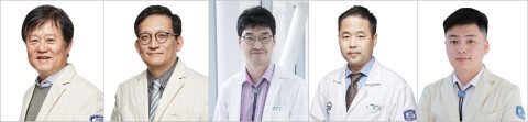 | ▲김동욱 교수, 이동건 교수-박성수 교수-이종민 교수-김동윤 임상강사 (사진=서울성모병원 제공) |