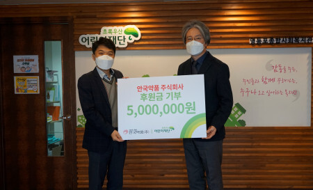 기부금 전달식은 안국약품 김승묵 본부장과 영등포종합사회복지관 이충로 관장이 참석한 가운데 진행했으며, 지역 내 어려운 이웃 및 소외계층을 위해 사용해 달라는 의미로 총 500만원을 전달했다.