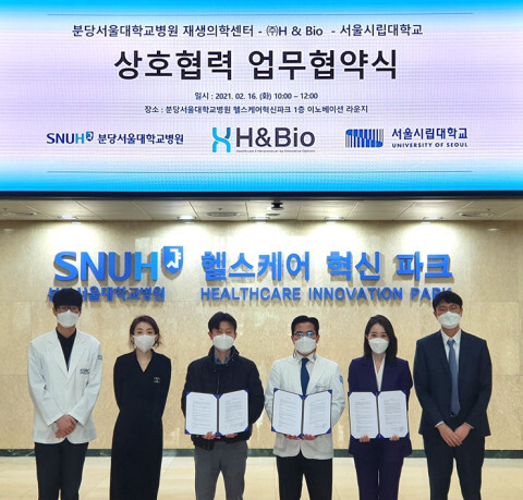 | ▲분당서울대병원 재생의학센터, 에이치앤바이오-서울시립대와 MOU 체결 (사진=분당서울대병원 제공) |