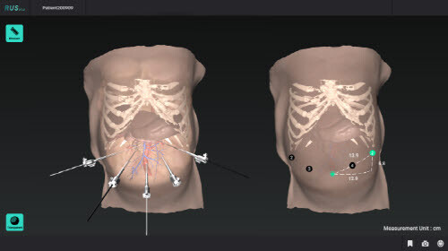 RUS는 외과 전문의를 대상으로 한 수술용 네비게이션으로써, 본 소프트웨어를 이용해 모의 치료 및 모의 시술에 활용할 수 있다. 로봇 및 복강경 수술시 내시경의 제한된 시야와 주변 조직으로 인해 필요 장기로의 접근이 어려운 경우가 많은데, RUS는 환자 고유의 해부학적 정보를 시각화하고 유의미한 주변 장기를 식별함으로써 술자의 신속한 의사 결정을 돕는다.